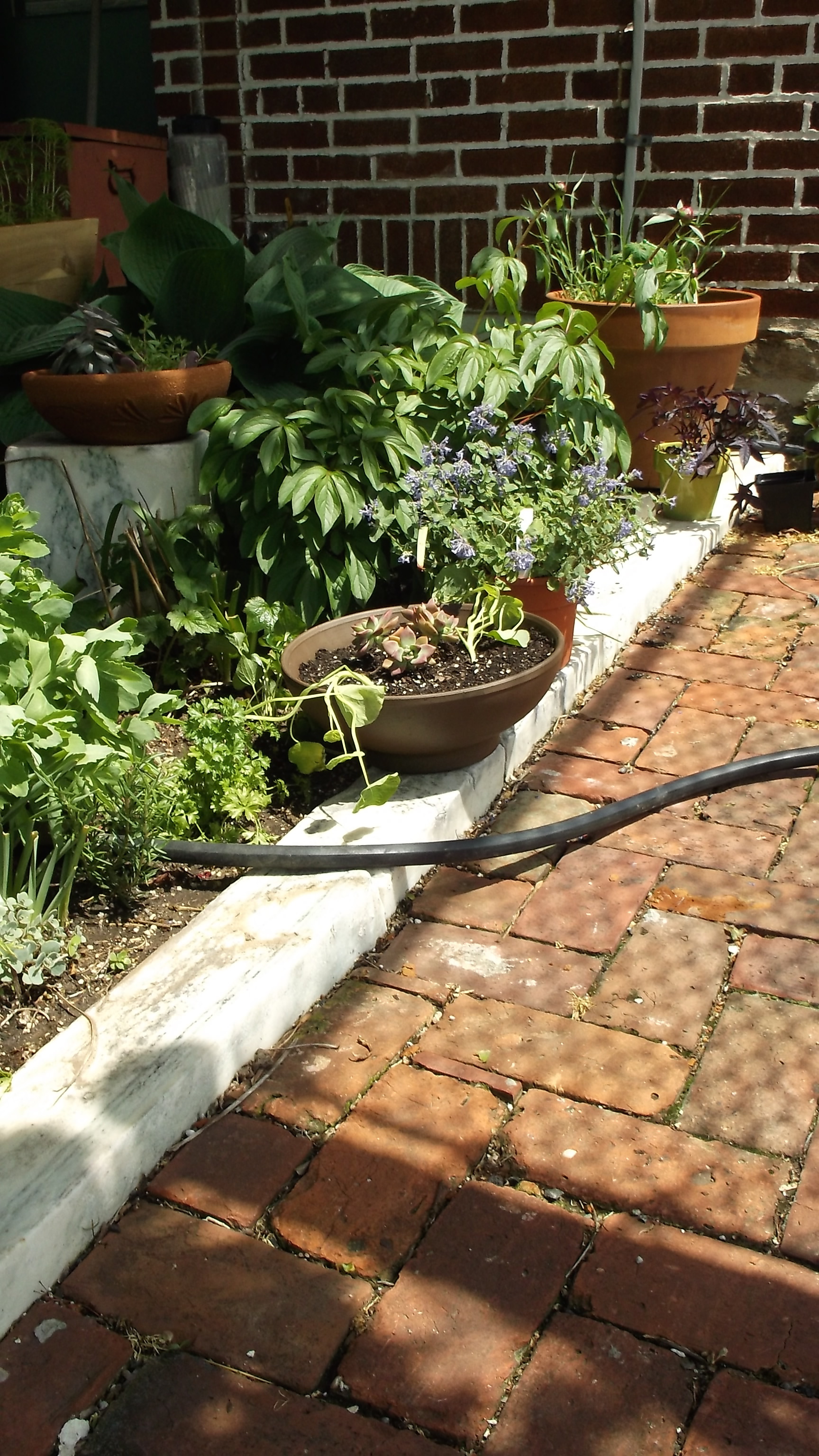 People like me collected steps and sills in nicer condition for garden use.  Wear patterns tell the story of healthy, prosperous neighborhoods.  Tool marks upon the ends aidScreen Shot 2014-06-01 at 9.58.35 AM one in establishing production date, as methods of stone dressing evolved.  The 350 pound steps were welcomed by friends and neighbors, as well.  A unique pillar for the garden bird bath or flower-pot.  And the sills make great bordering stones!  Pictured is a local effort.  These stones were pulled from houses under demolition within Philadelphia’s Fairmount section.