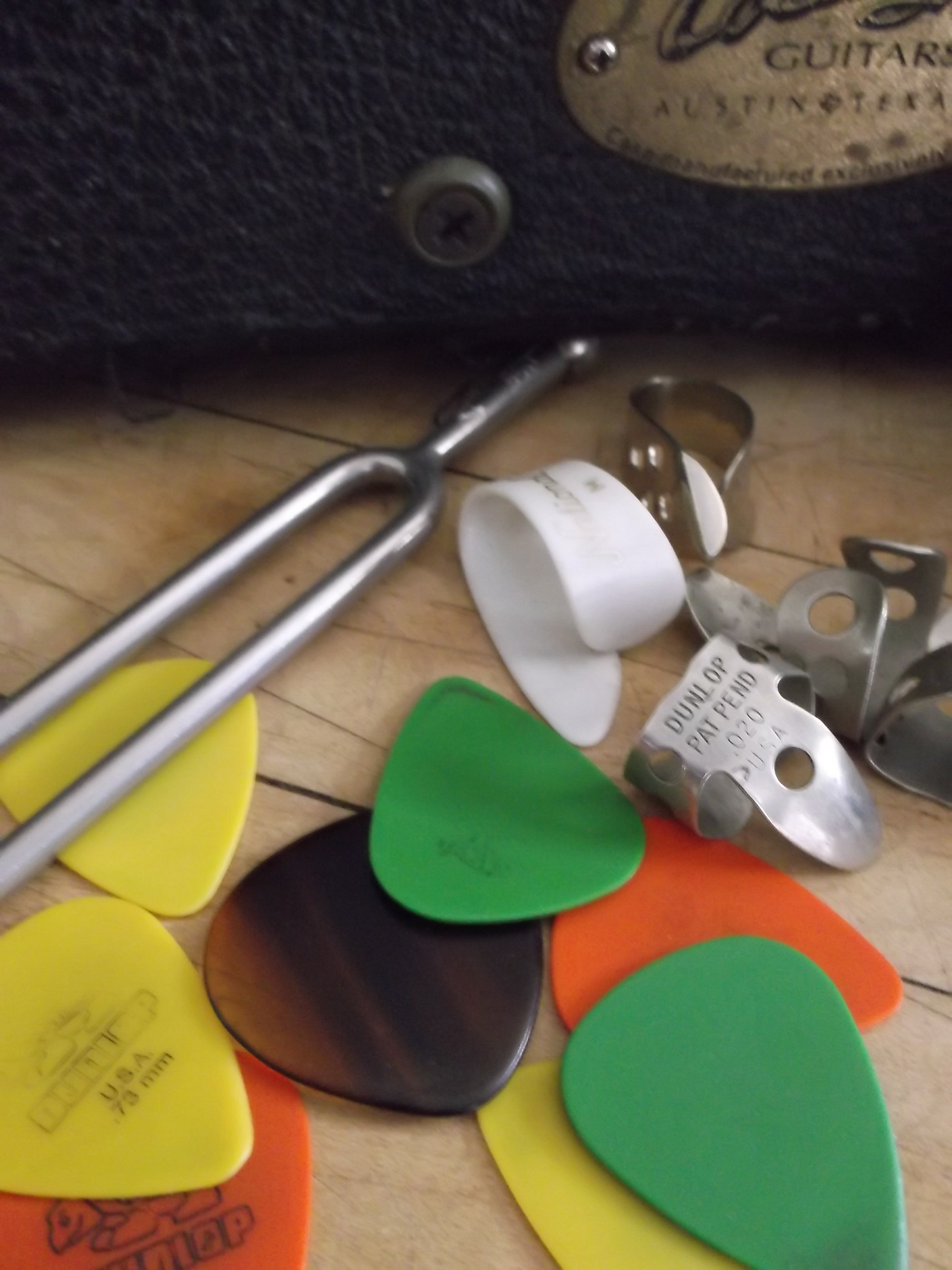 Within guitar shops across America, you will find small plastic cases by the register. Stacked, arranged, jumbled. Maybe one large case instead with over a hundred choices. Pick selections may seem dizzying. Tortoise shell, multi-colored, plastic, carbon fiber, bone . . . where to start?