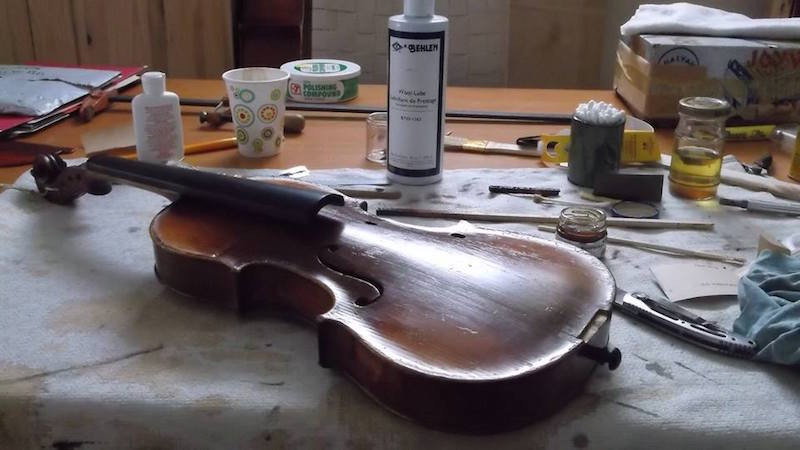 multiple repairs to an old violin