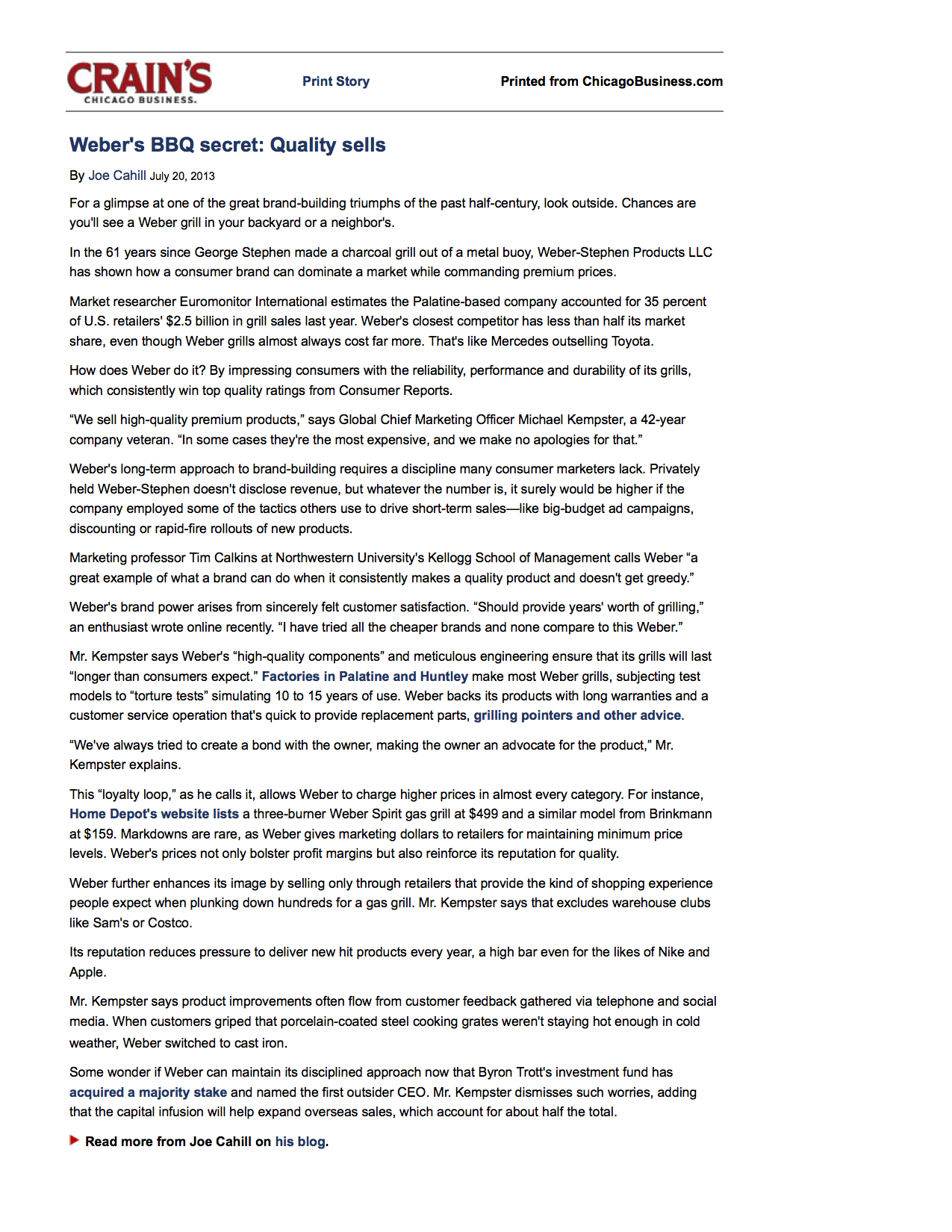 An excellent Weber article written by Joe Cahill for Crain’s Chicago Business is linked here.