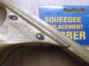 Originally purchased was the Cadillac of squeegees, an Ettore, produced by the leader in such products. An American Dream story of manufacturing. Immigrant has invention then is spurned by manufacturers and vendors. Immigrant markets invention, becomes successful, dominates the market long after patent runs out. Initially balance and design won converts. But the streak-free glass … what was that about? The secret rubber formula of the squeegee insert!