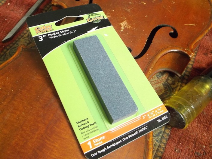 With his Ace Hardware store now offering 60% off, we’re stocking up. Lots of plumbing and electrical fittings, sheets of sand paper. And there, on a high shelf, the last sharpening stone they have. Gator Finishing. The same brand as the black oxide sandpaper I use. Calling me. It’s finally time to learn how to put an edge on my knife.