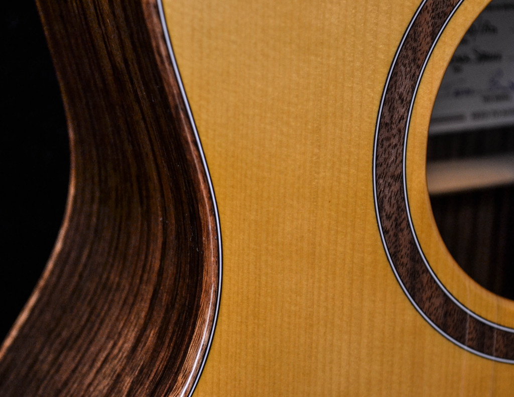 NOTE: The two vertical “lines” visible on the rosette and top are the brass guitar string’s reflection. – ATB