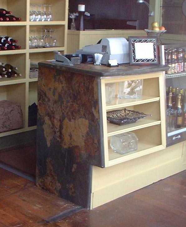 A YOUNG MAN WENT WEST. He found the work scene different from back east. Not so many taverns and restaurants, his typical clients. But Mariam was opening Savoury’s, on Main Street in Mariposa, California. Mariam wanted something different for her hostess station. Her ears perked right up at the mention of custom stone work. And she knew a local secret.